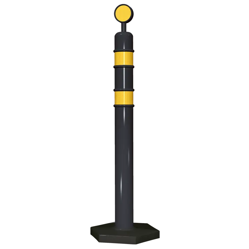 Poste especial para usarse en zonas de obra, accidentes, canalizar o confinar carriles, en eventos, etc. Con dos franjas de reflejante. Incluyen cabeza desmontable circular y base hexagonal de gran estabilidad y resistencia al viento. Fabricado en polietileno de media densidad con U.V. Medidas: Poste: Diámetro: 9.5 cm., Alto:114.0 cm. Base: Diámetro: 40.0 cm., Alto: 8.0 cm. Color: Negro. Reflejante: Blanco o ámbar.